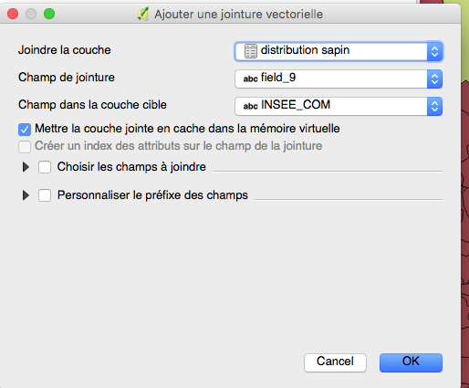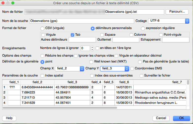 Indiquez également la correspondance entre les colonnes longitude et latitude et les champ X et Y.