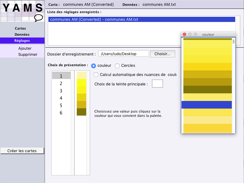 Vous voulez construire une carte montrant par un code couleur la densité de population pour chaque département, avec YAMS c'est possible.