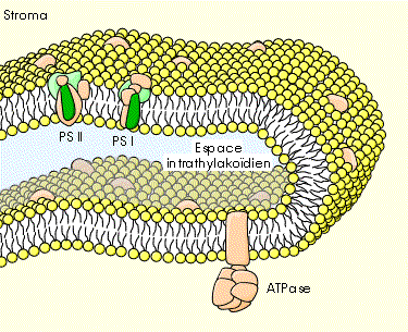 les thylakoïdes, baignant dans le stroma. L'empilement